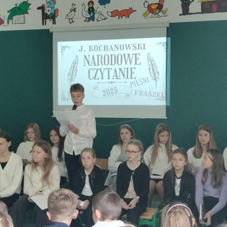 We środę 8.10.2025 r. w Szkole Podstawowej w Iskrzyni odbyło się wyjątkowe wydarzenie — Narodowe Czytanie utworów Jana Kochanowskiego. Uczniowie oraz nauczyciele wspólnie przenieśli się w świat poezji jednego z najwybitniejszych twórców polskiego renesansu. Podczas spotkania rozbrzmiały niektóre fraszki, pieśni i treny Jana z Czarnolasu, a uczestnicy mogli interpretować słowa poety, odkrywając ich uniwersalne przesłania o życiu, przemijaniu i ludzkich wartościach. Wspólne czytanie było nie tylko lekcją literatury, ale też pięknym świadectwem przywiązania do języka i tradycji. Dziękujemy uczniom z klas 4 - 8, którzy włączyli się w tę inicjatywę i przyczynili się do stworzenia niezapomnianej, pełnej refleksji atmosfery!